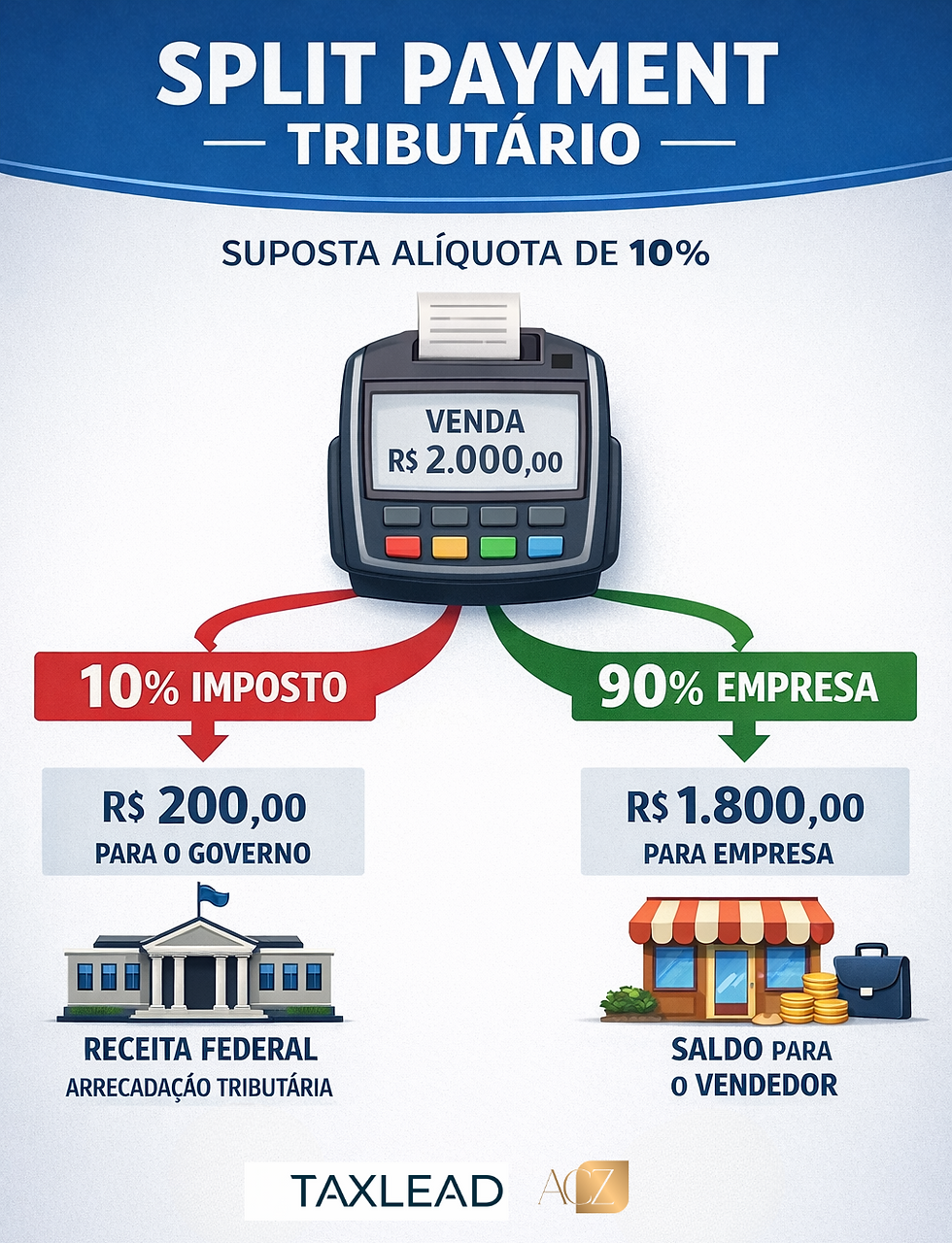 Um exemplo simples ajuda a visualizar o processo: em uma venda de R$ 2.000,00, o sistema, no próprio momento da operação, separaria automaticamente a parte correspondente aos tributos. Considerando supostamente uma alíquota de 10%, seriam destinados R$ 200,00 diretamente ao governo, enquanto os R$ 1.800,00 restantes seriam enviados à empresa ou ao vendedor. Essa sistemática busca reduzir o risco de inadimplência tributária, sobretudo nos tributos indiretos, garantindo uma arrecadação mais estável e segura para o Fisco.